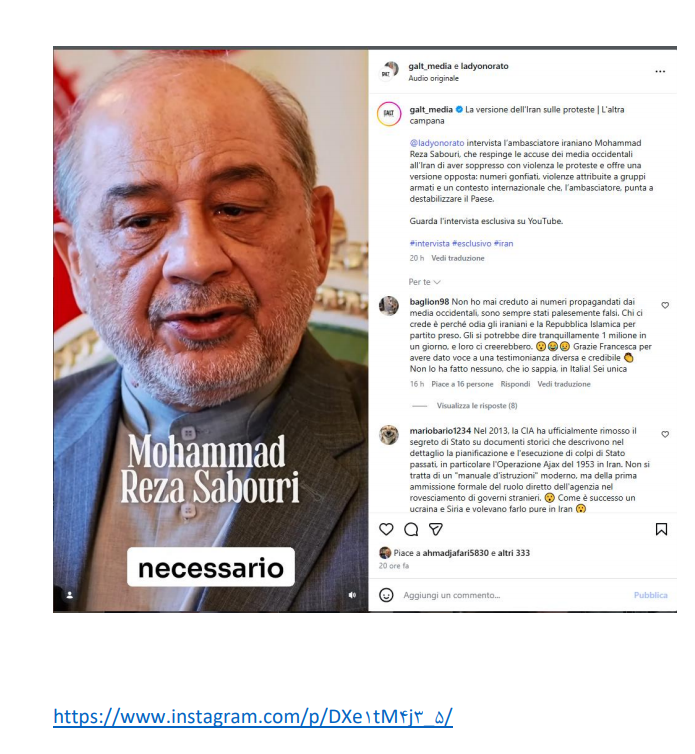 مصاحبه سفیر جمهوری اسلامی ایران در رم با کوارتا رپوبلیکا شبکه چهار تلویزیون
