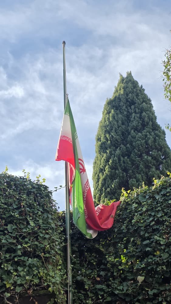 La sacra bandiera della Repubblica Islamica dell’Iran presso l’Ambasciata dell’Iran in Italia è stata issata a mezz’asta in segno di omaggio alla memoria dei cari martiri nella lotta contro gli elementi terroristici americani e il regime sionista a seguito della proclamazione di tre giorni di lutto nazionale da parte del governo.