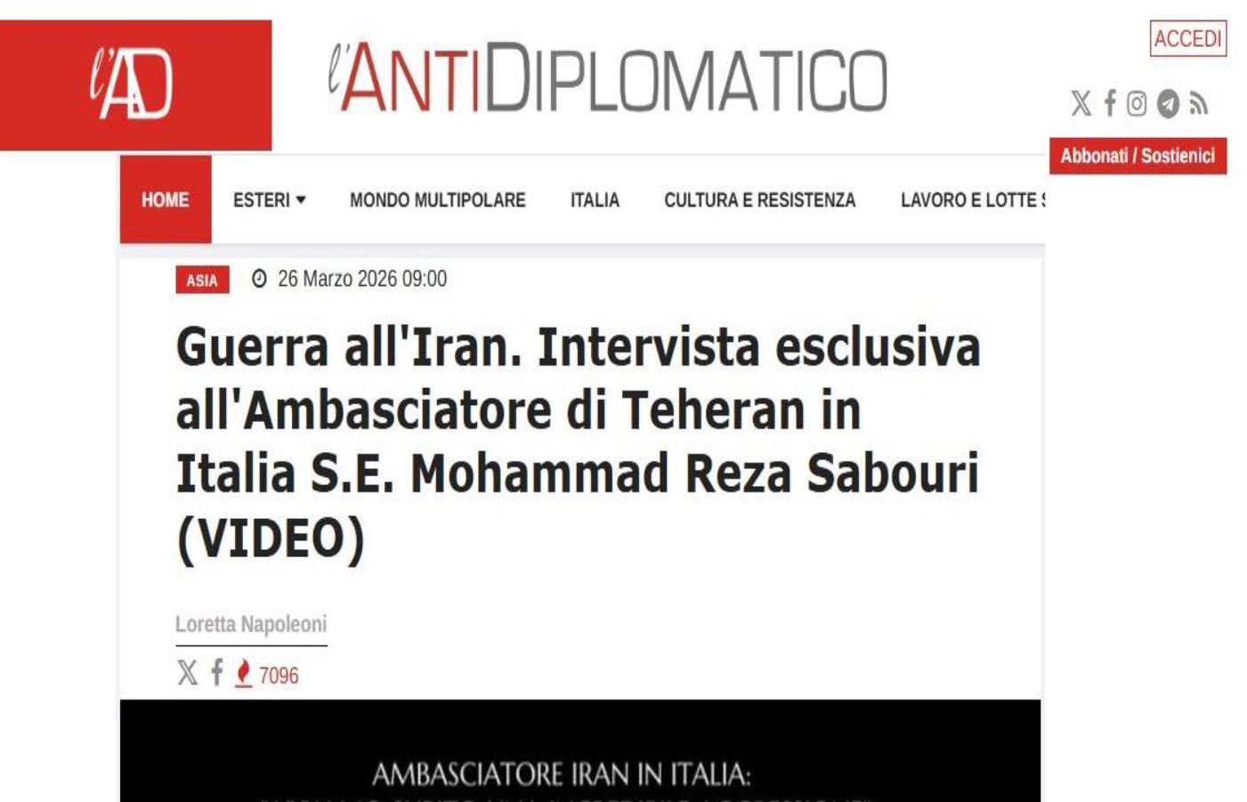 - Accogliamo con favore le recenti posizioni della signora Meloni riguardo al mancato coinvolgimento dell’Italia nella guerra e alla condanna dell’attacco a una scuola femminile a Minab, che ha causato la morte di 176 studentesse. Queste affermazioni sono importanti per noi, ma va sottolineato che questo crimine non è nato dal nulla: i responsabili devono essere condannati e assumersene la responsabilità. Secondo la Carta delle Nazioni Unite, gli Stati membri sono obbligati a condannare le aggressioni. Finché l’Italia non parteciperà ad azioni ostili, non sarà considerata un paese nemico, e non ci opponiamo al suo ruolo o a quello di altri paesi, purché siano rispettate le condizioni dell’Iran.