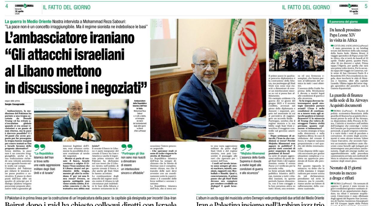 • Senza dubbio, la pace non è un concetto irraggiungibile, anche se la sua realizzazione richiede una volontà autentica e uno sguardo basato sulle realtà sul campo. L’iniziativa del Pakistan per ridurre le tensioni è un passo positivo e costruttivo. Il piano in dieci punti dell’Iran offre un quadro di principi per il dialogo. Qualora vengano presentate proposte alternative volte a garantire gli interessi legittimi dell’Iran, esse avranno certamente la possibilità di essere esaminate al tavolo dei negoziati.