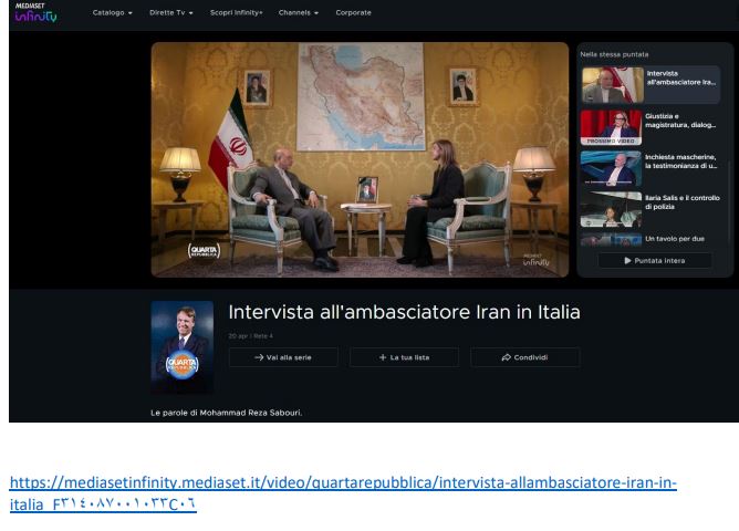 Intervista dell’Ambasciatore della Repubblica Islamica dell’Iran a Roma con “Quarta Repubblica” Rete 4